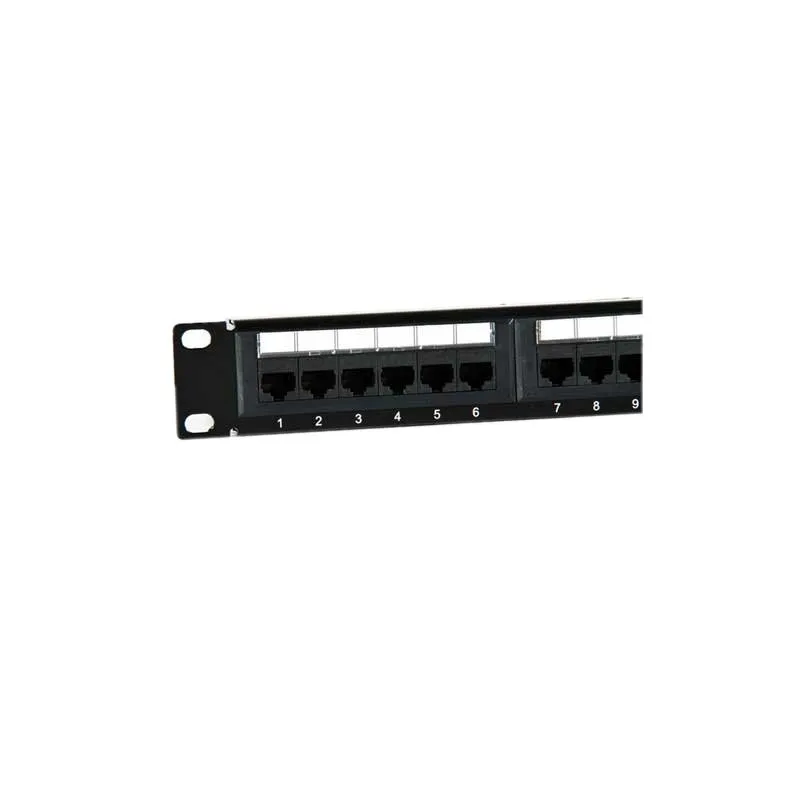 Patch panel para ancho de perfil estándar de 19" con 24 conectores UTP, con bandeja trasera para enrutado de los cables, para redes de voz y datos.