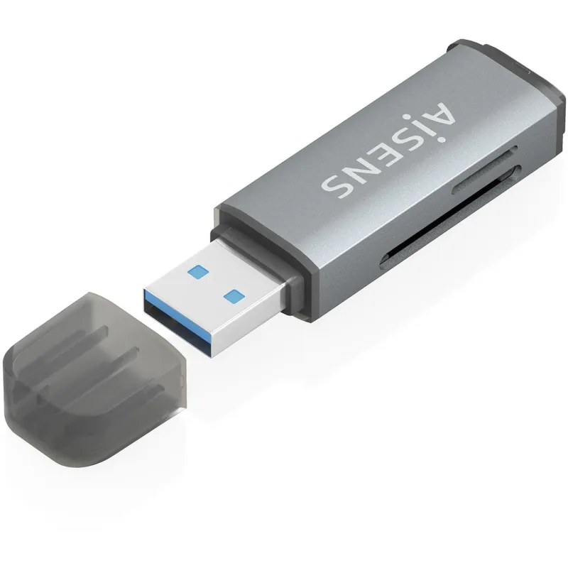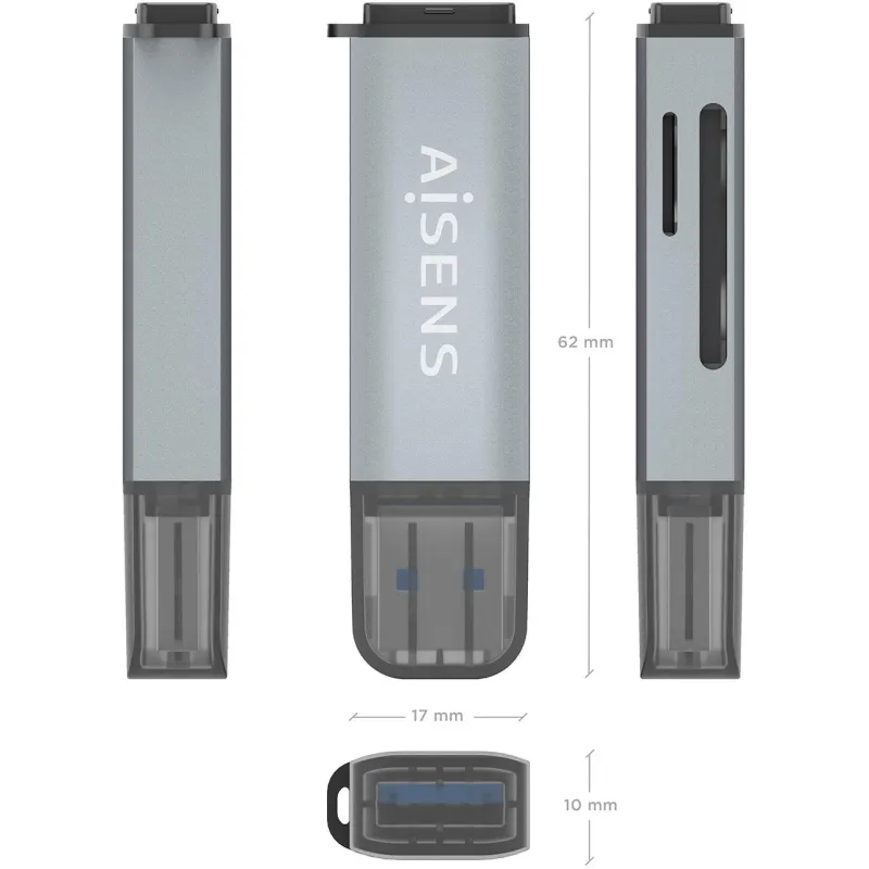 Lector de tarjetas Aisens ASCR-2A09-GRs , lee Micro MMC. Rs-MMC. MMC Micro, con USB 3.2 Gen 1 Type-A, compatible con Windows 11 y otros sistemas operativos