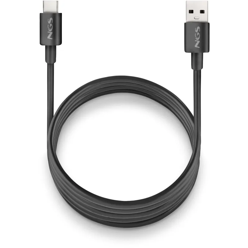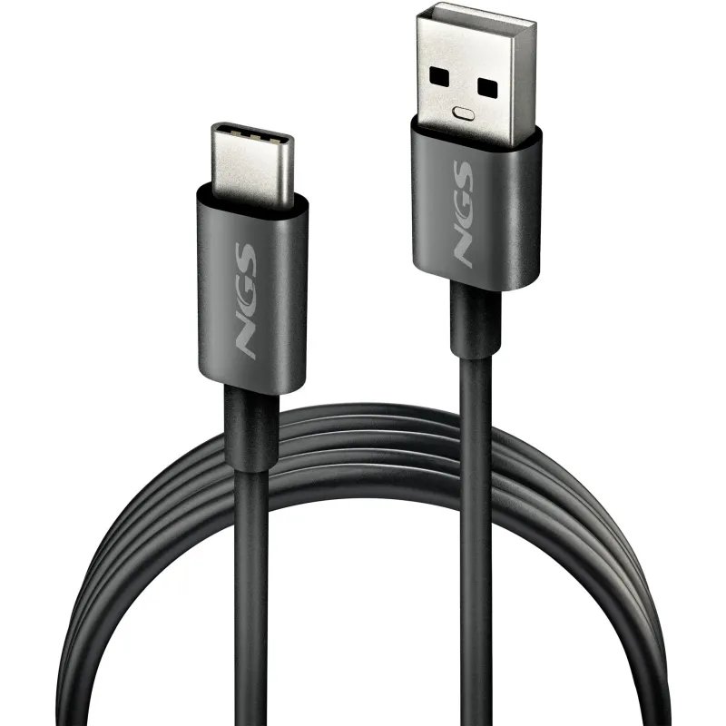 El cable USB NGS ZYRO-AC Black es un cable USB-A a USB-C de 1 metro diseñado para cargar y conectar datos de dispositivos con USB-C cuando el puerto disponible es USB-A.