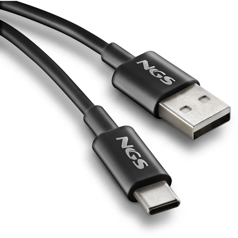 cable USB NGS ZYRO-AC Black USB-A a USB-C 1m es un cable de carga y datos para móviles y tabletas USB-C desde puertos USB-A, con USB 2.0 (480 Mbps).)