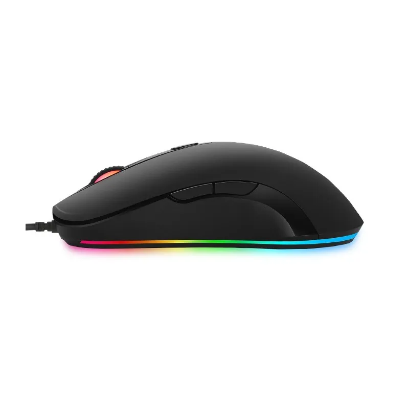 CUIDA DE TU MANO: Tiene un diseño ergonómico que se adapta a la forma de tu mano, ofreciéndote una comodidad y una suavidad increíbles. Su tamaño es de 67 (ancho) x 124.5 (largo) x 38.5 (alto) mm y su peso es de solo 90 gramos, lo que lo convierte en un ratón ligero y fácil de manejar. Además, cuenta con un cable USB de 1800 mm de longitud, que te permite moverte con total libertad. Y para darle un toque de personalidad, dispone de un LED RGB Blacklight con 16.8 millones de colores que puedes configurar a tu gusto.