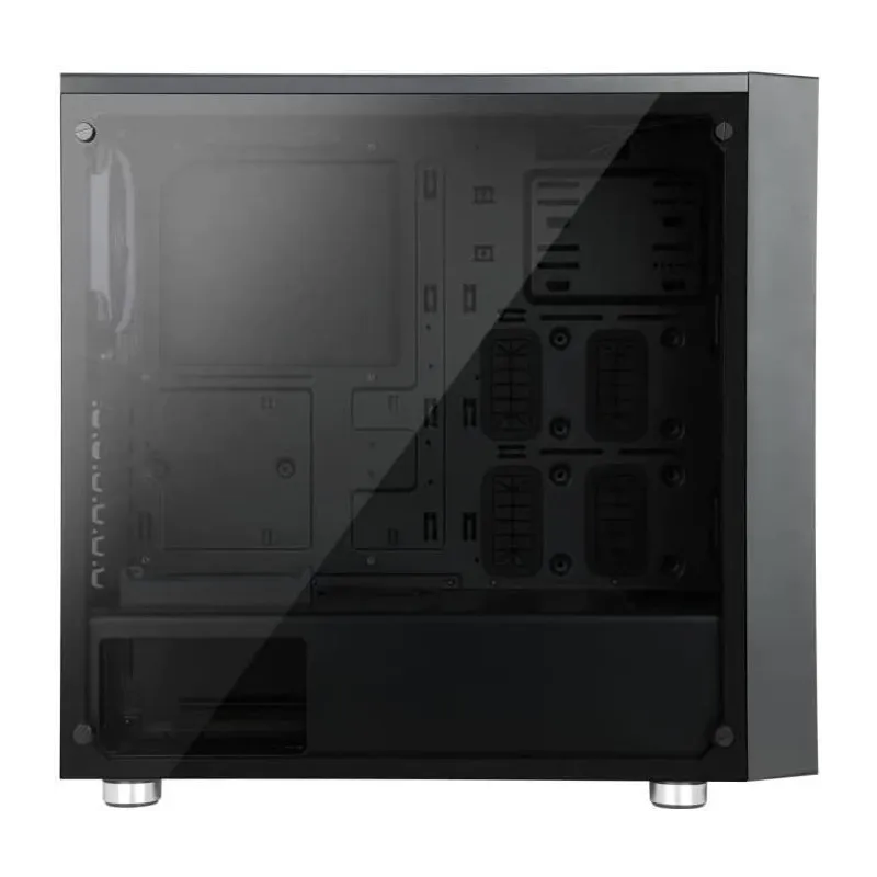 La semitorre, fabricada con plástico ABS y vidrio templado, presenta unas dimensiones de 205 mm × 420 mm × 430 mm, ofreciendo un volumen de 37 L. Es compatible con formatos de placas base Mini ITX, Micro ATX y ATX, y dispone de 7 ranuras PCI para expansiones.
