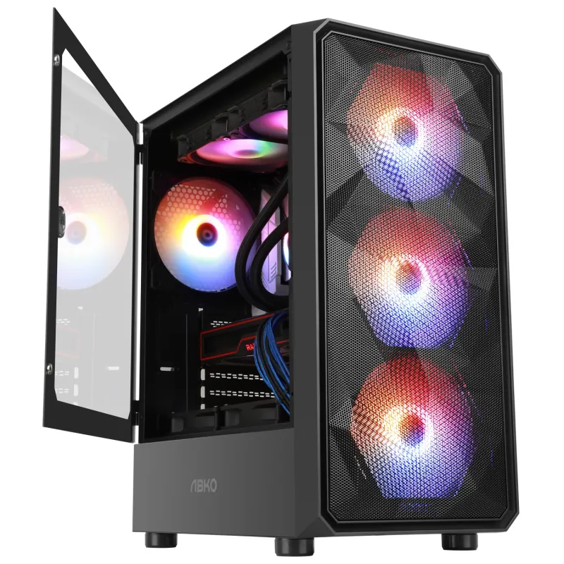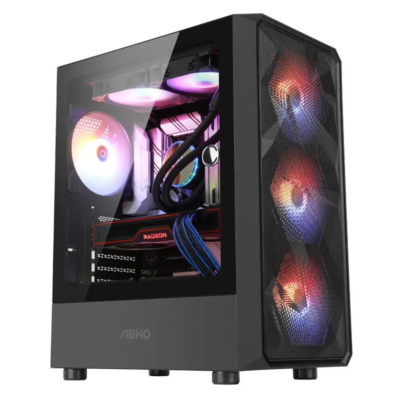 LA BELLEZA DEL CRISTAL: Si buscas una caja que combine elegancia y rendimiento, la Abkoncore G40 Signature Negra es tu mejor opción. Esta caja tiene un diseño minimalista y sofisticado, con un panel frontal de cristal templado que deja ver el interior iluminado por los ventiladores RGB. El panel lateral también es de cristal templado, para que puedas admirar todos los componentes de tu PC.