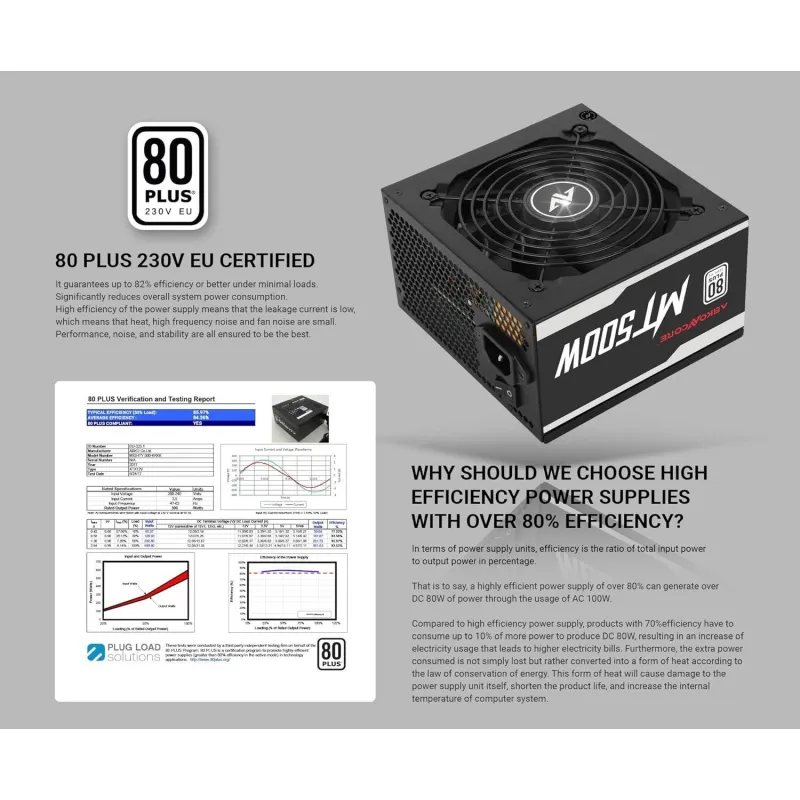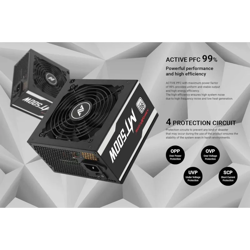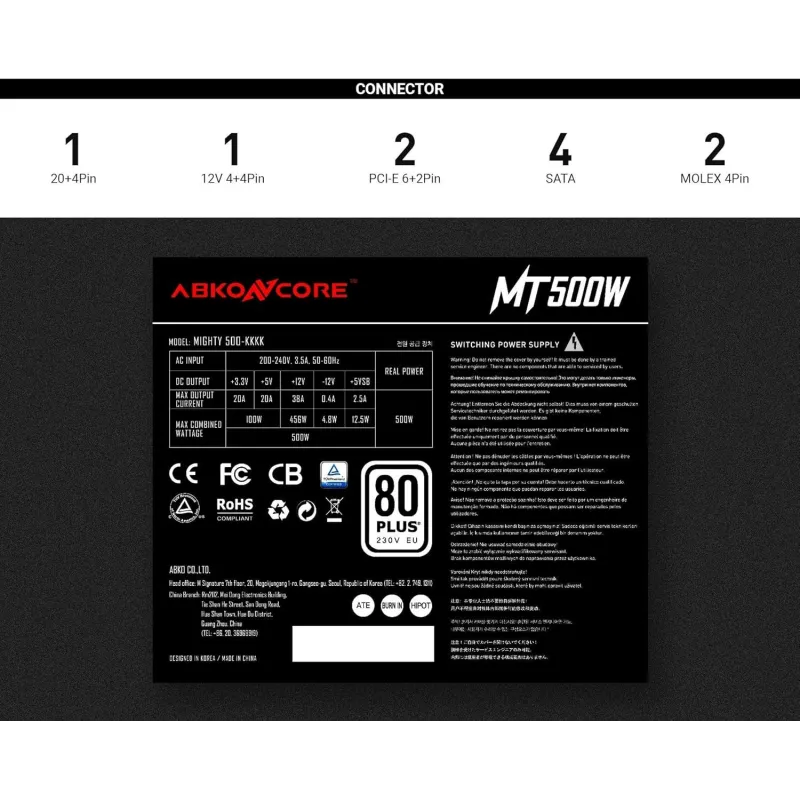 Fuente de Alimentación Abkoncore Mighty Potencia de 500W 80 Plus de Formato ATX, 99% PFC activo