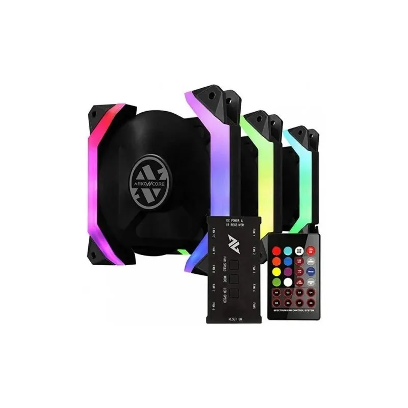 Abkoncore SP120 Spectrum Sync ARGB Pack 3 Ventiladores 120mm Negros + Mando + Hub