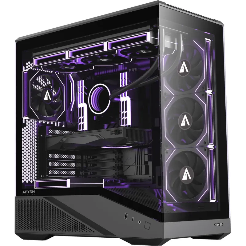 Torre ATX ABYSM ARIAN FRAME A400 Black con cristal templado, 4 ventiladores ARGB PWM, USB-C 3.2 Gen 2 y soporte GPU hasta 420 mm. Formato hasta E-ATX.