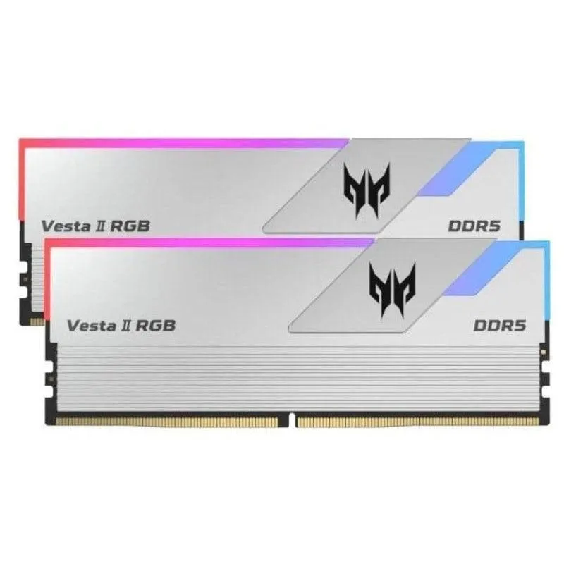 Memoria RAM Acer Predator Vesta II RGB DDR5 de 32 GB (2x16 GB) con 6000 MHz y ECC ofrece rendimiento avanzado, soporte XMP 3.0 Plata