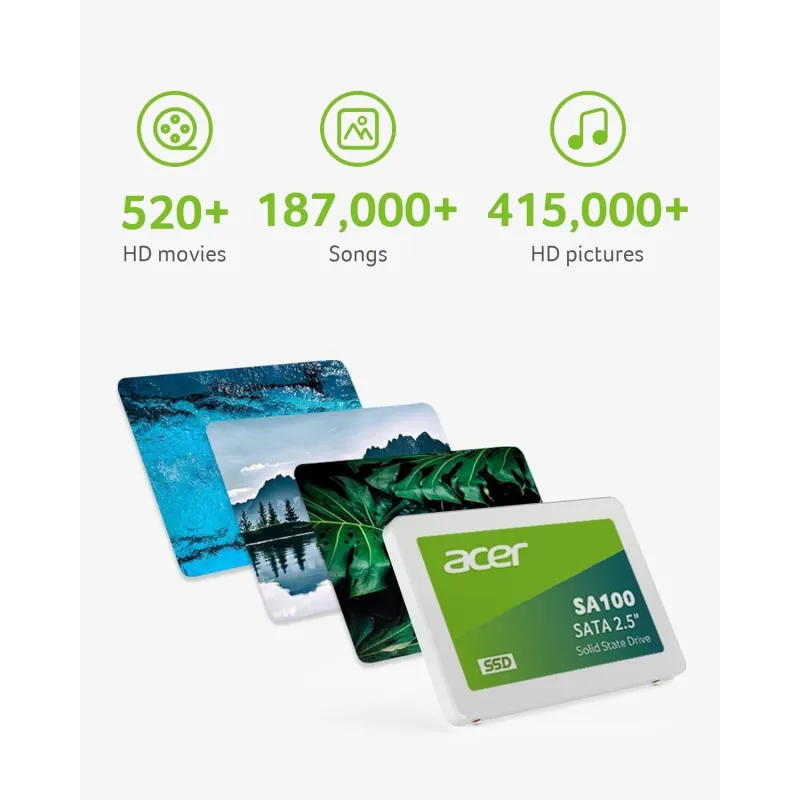 CAPACIDAD EXTRA, PARA TODAS TUS NECESIDADES: El SSD Acer SA100 de 2.5" ofrece capacidades de hasta 1.92TB, lo que permite almacenar fácilmente videos, audios y cualquier otro archivo para tu entretenimiento, oficina en casa o uso de estudio.