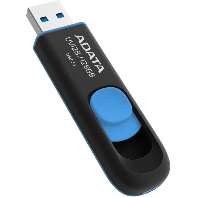 Pendrive Adata DashDrive UV128 Capacidad de Almacenamiento 128GB / USB 3.2 Gen 1 / Velocidad de Lectura 90MB/s /  Velocidad de Escritura 40MB/s Conexion USB A Negro/Azul