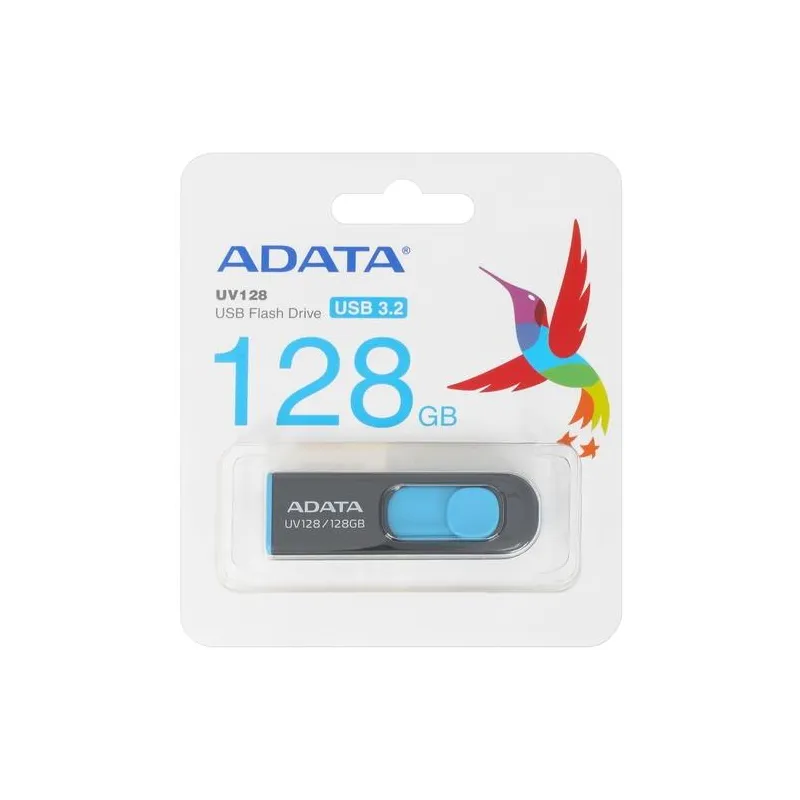 EMPAQUE QUE CUIDA CADA DETALLE: Pendrive Adata DashDrive UV128 128GB Presentado en un embalaje tipo blister, cada unidad llega a tus manos con una protección que asegura su integridad desde el primer momento. Este tipo de empaque no solo resguarda el producto, sino que también facilita su almacenamiento y transporte, permitiéndote acceder a la calidad que necesitas con total confianza.