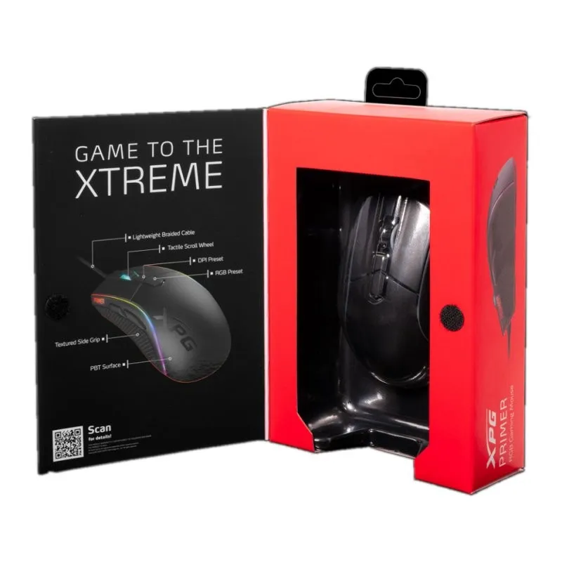 Presentamos el ratón para juegos XPG PRIMER. Tanto si es un veterano al que le gusta un ratón simple con actitud como si es un novato que busca mejorar su destreza en los juegos, XPG PRIMER es para usted. Sus interruptores Omron con un valor nominal de 20 millones de clics, un sensor óptico con hasta 12 000 PPP y una gran cantidad de toques de diseño para mayor comodidad, precisión, durabilidad y estilo, ¡el ratón XPG PRIMER está listo para mejorar su juego!