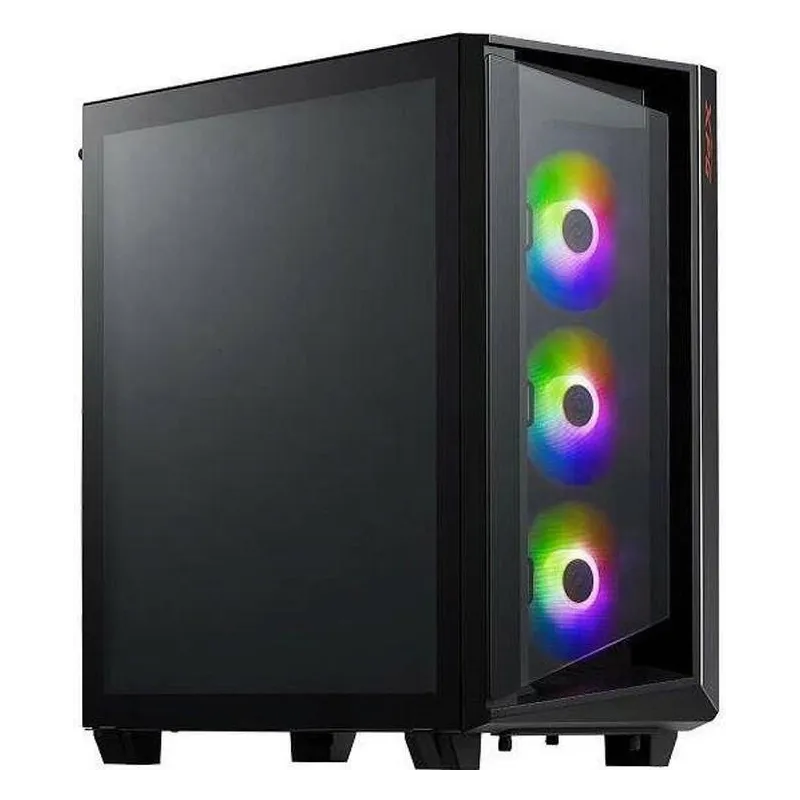 Este chasis de computadora de factor de forma Midi Tower es ideal para cualquier tipo de PC. Con un elegante diseño en color negro, soporta una amplia variedad de formas de factor de tarjeta madre, incluyendo ATX, CEB, EATX, EEB, micro ATX, y Mini-ITX. Destaca su iluminación personalizable en colores azul, verde y rojo, y paneles laterales de vidrio templado que permiten vislumbrar el interior de tu equipo.