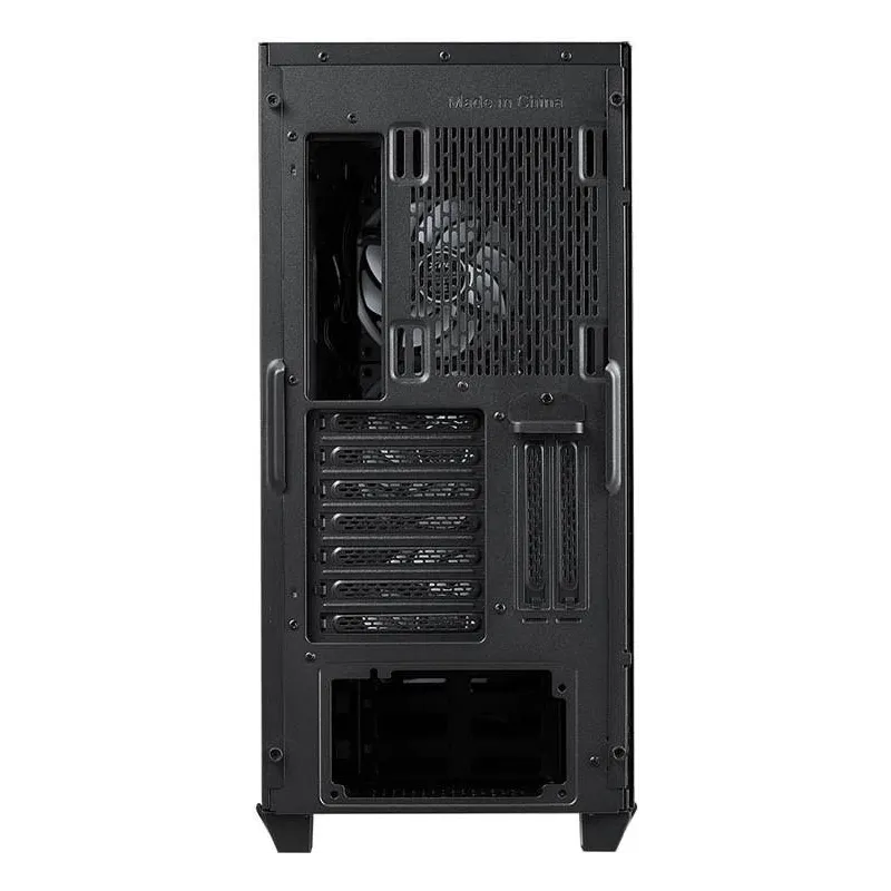 Aunque no incluye una fuente de alimentación, este chasis cuenta con numerosos puertos para una conectividad avanzada, incluyendo 2 puertos USB 3.2 Gen 1 tipo A y 1 puerto USB 3.2 Gen 2 tipo C. Para mantener tu sistema fresco, viene con 3 ventiladores frontales de 120 mm preinstalados, garantizando un flujo de aire óptimo.