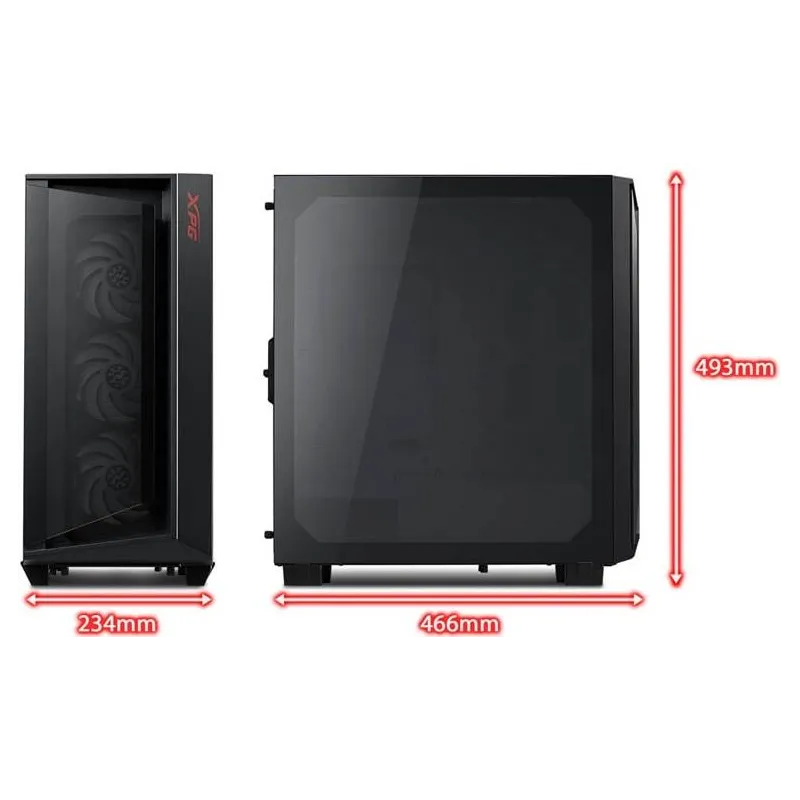 EL DISEÑO XPG :EXOSKELETON MANTIENE EL EQUILIBRIO ENTRE LA EFICIENCIA DE LA ENTRADA DE AIRE Y LA ESTÉTICA ARGB: El diseño del panel frontal de vidrio del XPG CRUISER mejora la entrada de aire mientras permite que brillen los ventiladores XPG VENTO 120 ARGB incluidos. *Incluye x3 ventiladores XPG VENTO 120 ARGB (frontal).