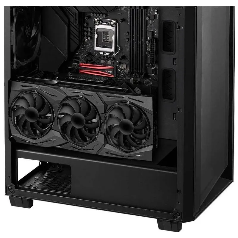 XPG CRUISER TIENE 7 RANURAS PCI-E HORIZONTALES Y 2 RANURAS DE INSTALACIÓN VERTICALES: Soporta tarjetas gráficas de hasta 350mm (sin radiador en el frente) de longitud. *La altura de despeje del cable de extensión VGA es de 27mm cuando se instala verticalmente.