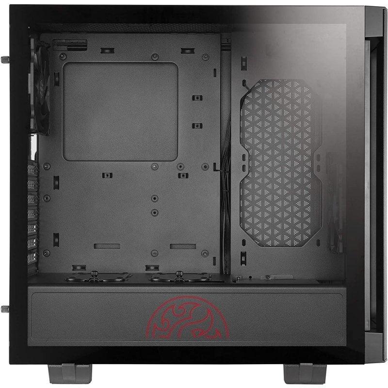 El gabinete para PC de factor de forma Midi Tower está fabricado en material SPCC y es adecuado para configuraciones de juego. Compatible con tarjetas madre ATX, micro ATX y Mini-ITX, ofrece una excelente flexibilidad para distintas configuraciones. Su diseño en color negro incluye una ventana lateral y paneles de vidrio templado, realzados por una iluminación RGB en colores azul, verde y rojo. Además, cuenta con un filtro anti-polvo y botones de encendido, apagado y restaurar.
