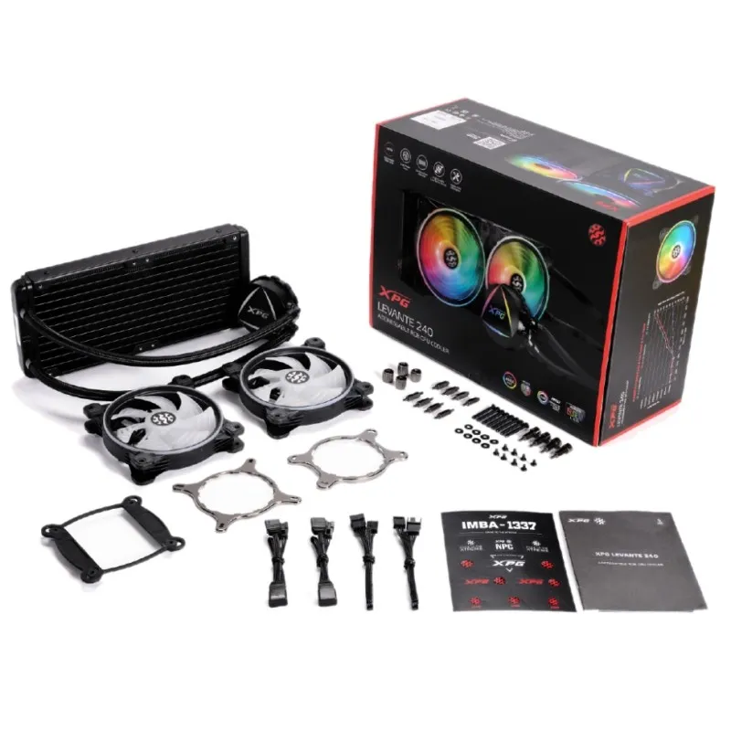 Radiador de 240 mm XPG LEVANTE:Todo el radiador de aluminio de 240 mm garantiza que la experiencia de juego sea suave y consistente, con sus 11 canales de agua para dispersar el agua y el calor a una altísima velocidad. Con dos ventiladores de 120 mm con iluminación ARGB, XPG LEVANTE 240 optimizó el rendimiento del flujo de aire y del enfriamiento.