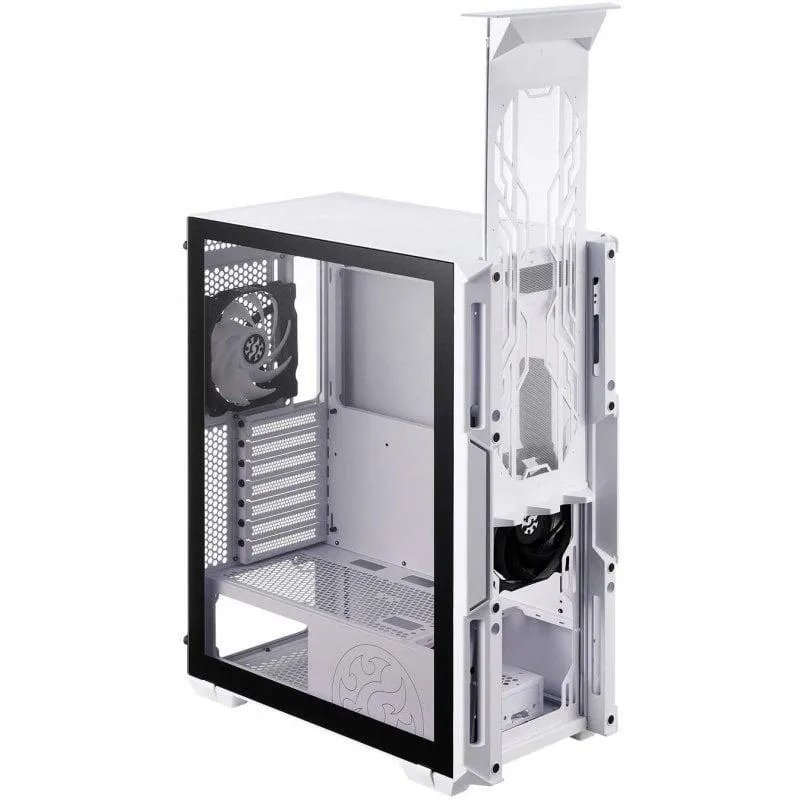 El nuevo gabinete para PC se presenta en un elegante color blanco y está fabricado con material SPCC. Diseñado para ser un elemento atractivo en cualquier escritorio, este gabinete admite tarjetas madre en formatos ATX, micro ATX y Mini-ATX. Cuenta con tres puertos de 3.5" y tres puertos de 5.25", ofreciendo amplia capacidad de expansión. Además, incluye una ventana lateral y paneles de vidrio templado para una apariencia moderna y sofisticada.