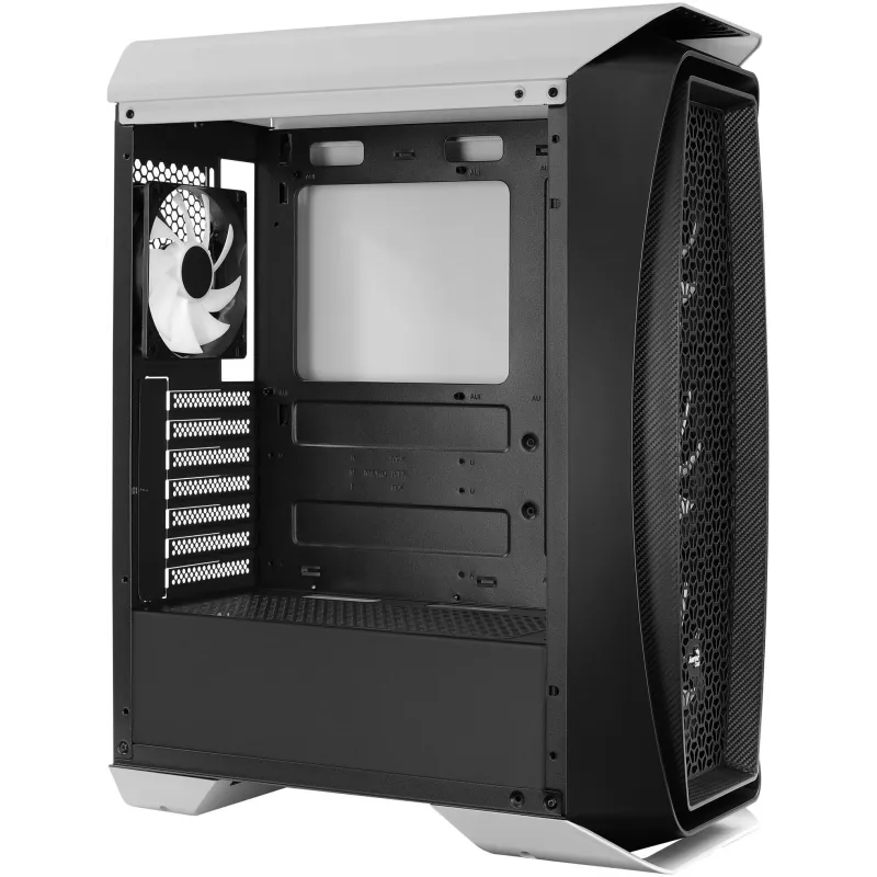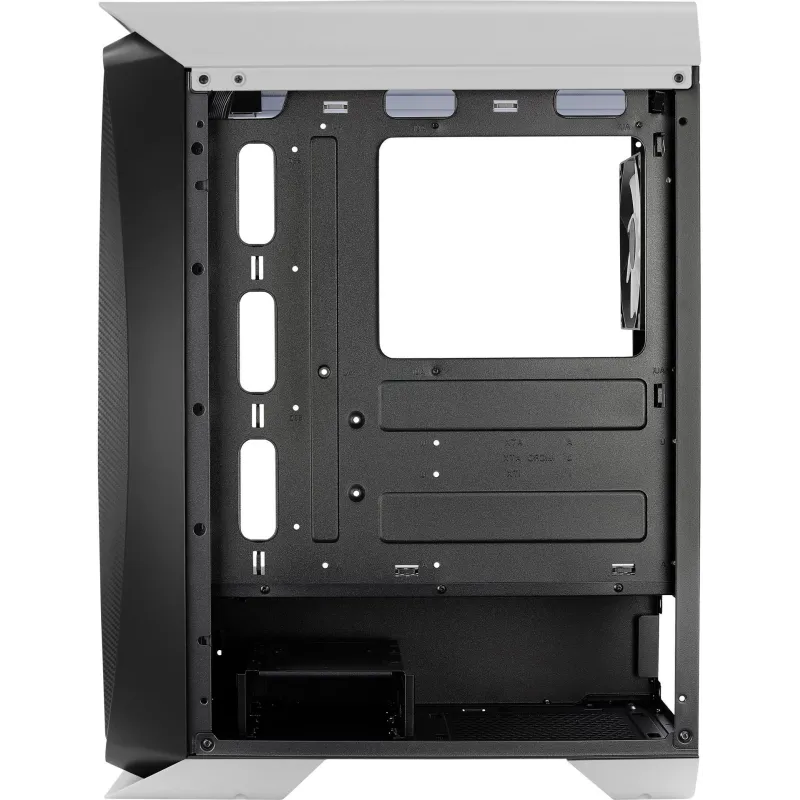 El chasis de PC está fabricado con materiales de alta calidad como Acrilonitrilo butadieno estireno (ABS) y SPCC, presentando un elegante diseño en color blanco. Con un factor de forma tipo torre, es compatible con tarjetas madre de formatos ATX, micro ATX y Mini-ITX. Cuenta con dos puertos de 3.5" y tres bahías de 2.5", además de siete ranuras de expansión, proporcionando amplia capacidad para almacenamiento y expansión.
