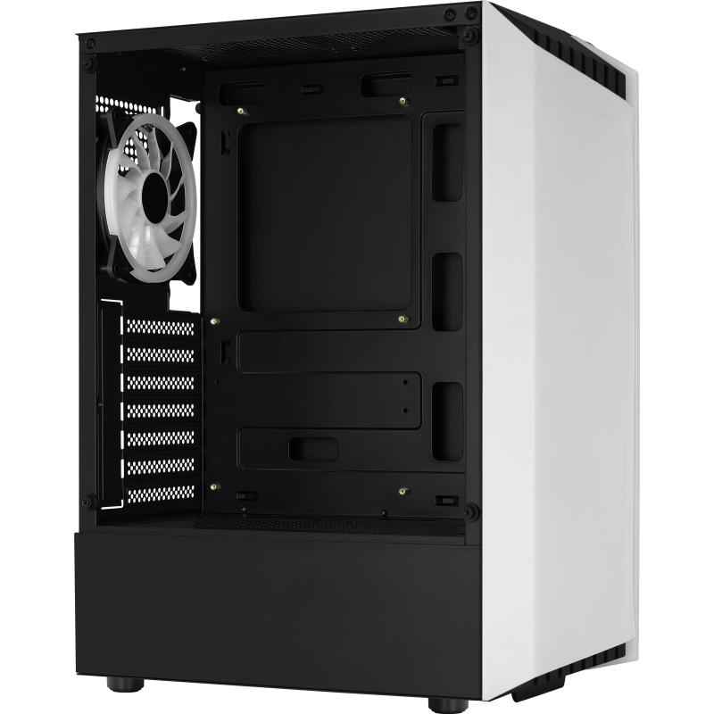 Diseñado específicamente para juegos, este chasis incluye una ventana lateral y paneles de vidrio templado que permiten una vista clara de los componentes internos, mejorados por una llamativa iluminación RGB en colores azul, verde y rojo. También incorpora una eficiente gestión de cables, así como botones de restaurar y encendido/apagado para una fácil operación.