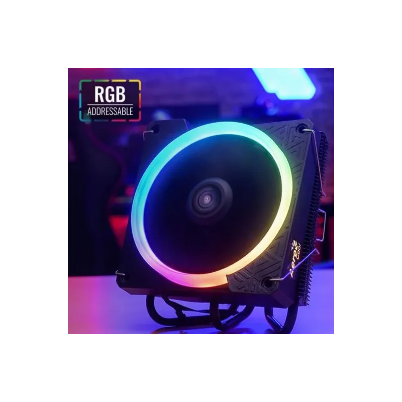 DISEÑO DE ANILLO LED RGB CON ESTILO: Viene equipado con un anillo LED RGB alrededor del ventilador del enfriador, lo que agrega un toque elegante y dinámico a su equipo.