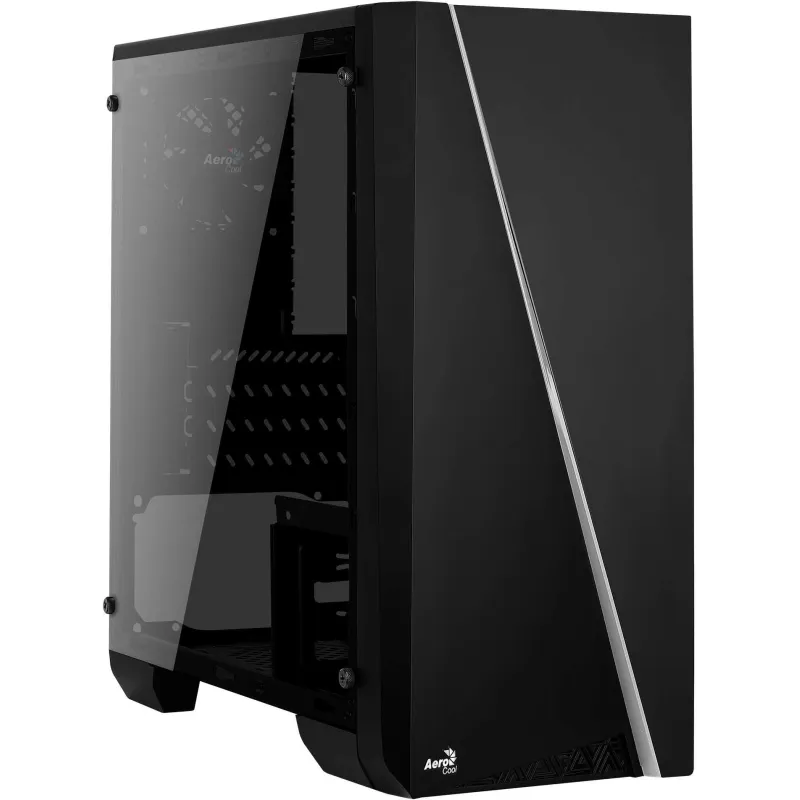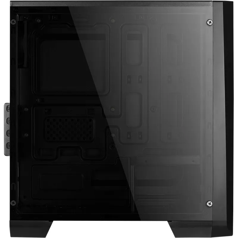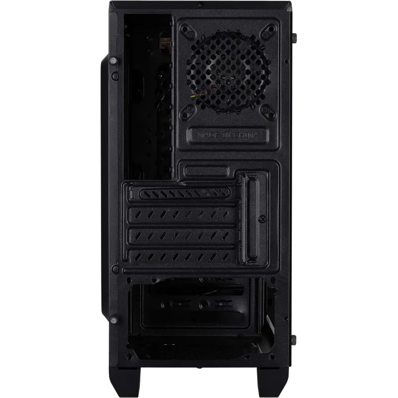 La ventana lateral permite una visualización interior, mejorada por la iluminación en azul, verde y rojo ubicada en la parte frontal del gabinete, ideal para personalizar tu setup. Además, soporta una altura máxima de la CPU de 14,7 cm y una longitud máxima de la tarjeta gráfica de 30 cm, permitiendo instalar componentes de alto rendimiento.