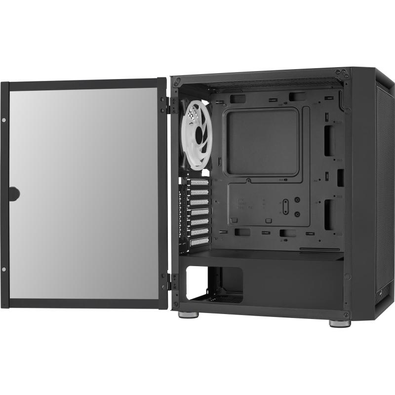 Viene equipada con 3 ventiladores de 14cm ARGB, 2 en el panel frontal y 1 en el panel trasero de la caja, y con ventana lateral total en cristal templado, a través de la que podrás ver el interior de tu rig en su totalidad y disfrutar de la iluminación de tus componentes. Además, gracias al mecanismo de bisagra de la ventana, podrás abrir y cerrar el panel con total facilidad.