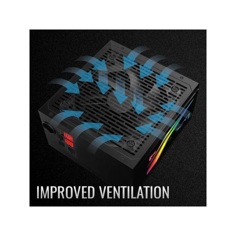Construida con un 30% más de área de ventilación en el cuerpo de la fuente de alimentación, la LUX RGB está diseñada para aumentar el flujo y la circulación del aire. Esta fuente de alimentación tiene un inteligente diseño semimodular, que facilita la gestión y la instalación de los cables.