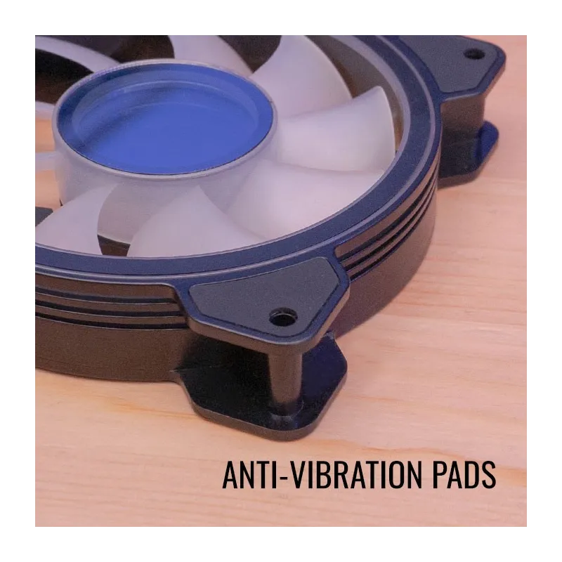 ALMOHADILLAS ANTIVIBRATORIAS: Las almohadillas antivibración absorben y amortiguan las vibraciones causadas por la rotación del ventilador.