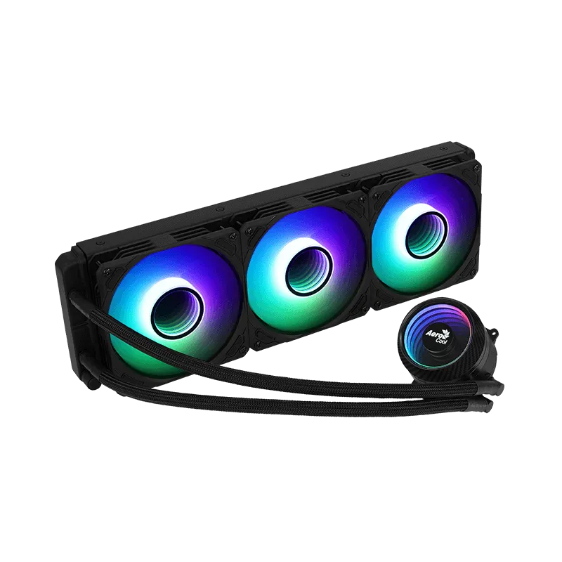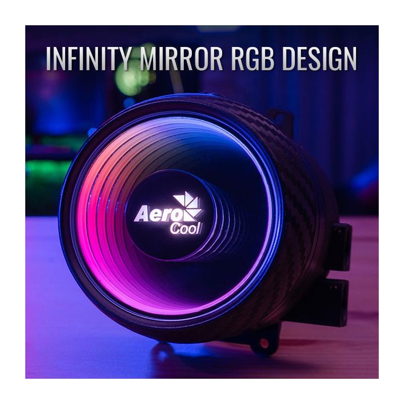 El Kit de Refrigeración líquida Mirage L360 de AeroCool es una solución de refrigeración líquida de alto rendimiento con un diseño Infinity Mirror RGB para ofrecer una experiencia de iluminación única y fascinante.