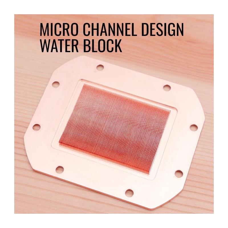 -El bloque de agua de cobre puro con diseño de micro canal permite una transferencia de calor más rápida.