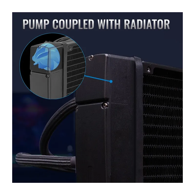 BOMBA ACOPLADA A RADIADOR: La bomba se coloca junto con el radiador en lugar del bloque de agua para reducir las vibraciones en la CPU.