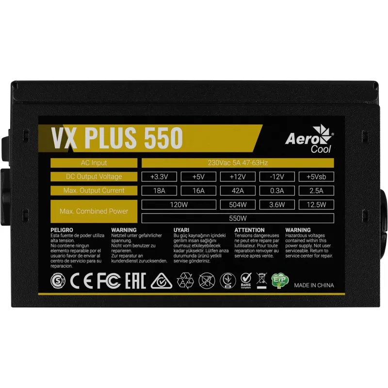 Con una potencia total de 550 W y un voltaje de entrada AC de 230 V, esta fuente de alimentación ofrece un rendimiento robusto y fiable para tu PC. Su frecuencia de entrada AC de 47 - 63 Hz y una corriente de entrada de 5 A aseguran una operación estable. Además, cuenta con una potencia combinada de 504 W en +12 V y múltiples protecciones de poder, incluyendo sobretensión, sobrevoltaje, cortocircuito y bajo voltaje, proporcionando seguridad adicional a tu sistema.