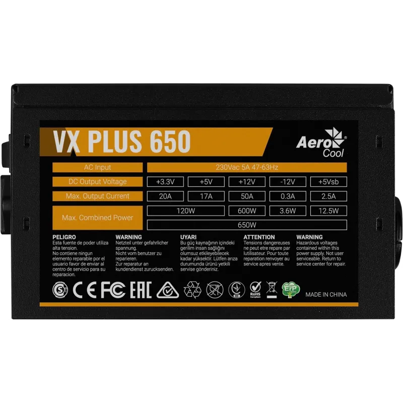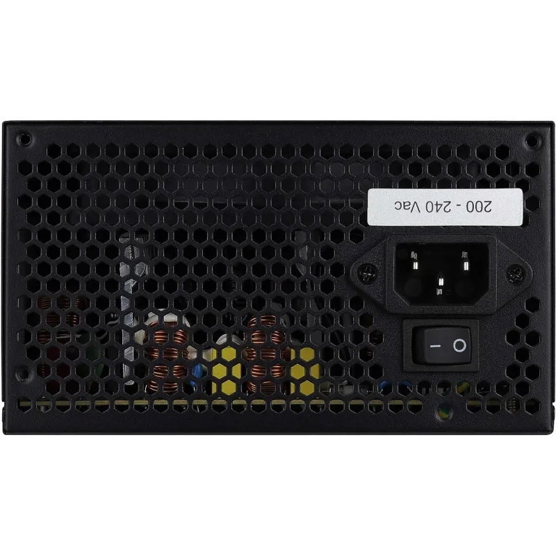 La fuente de alimentación de 650 W ofrece un rendimiento excepcional con una potencia combinada de 600 W en el rail de +12 V, garantizando una capacidad óptima para tu PC. Compatible con un voltaje de entrada AC de 230 V y una frecuencia de 47 - 63 Hz, asegura una operación estable y eficiente.