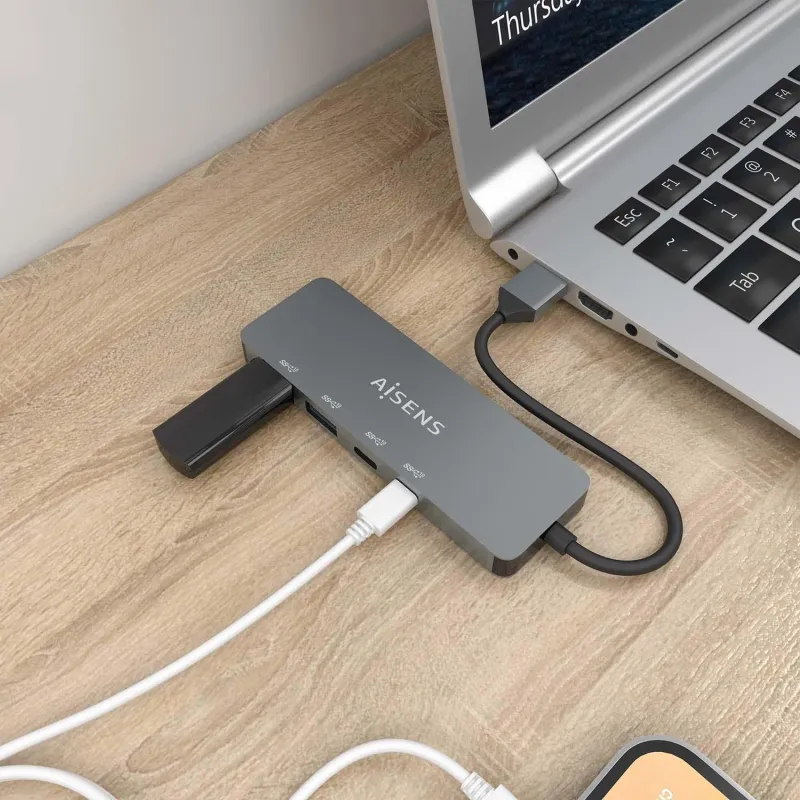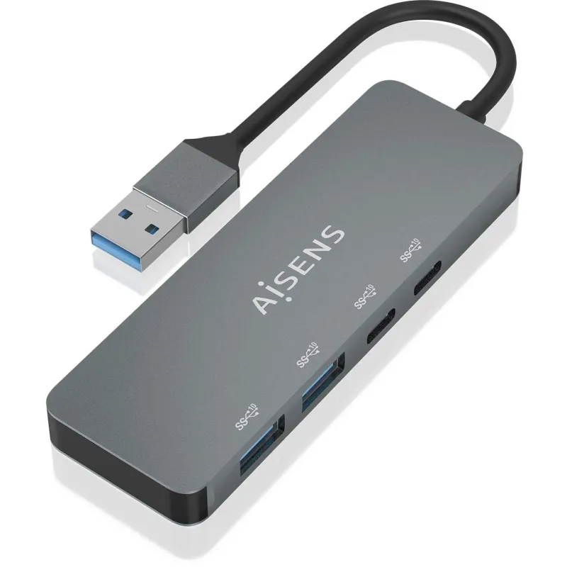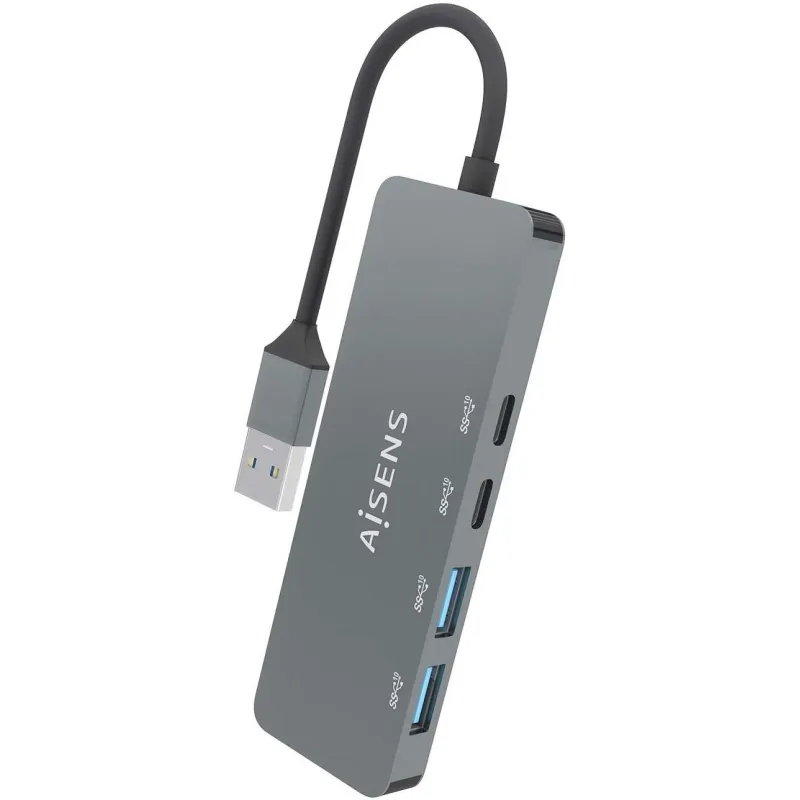 Aisens A106-0696 HUB USB-A 3.0 a USB-A 3.0 y USB-C 4 Puertos 15 cm Gris