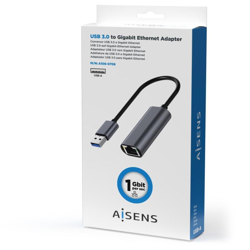 Aisens A106-0708 Conversor USB 3.0 a Ethernet Gigabit 10/100/1000 Mbps 15cm Gris