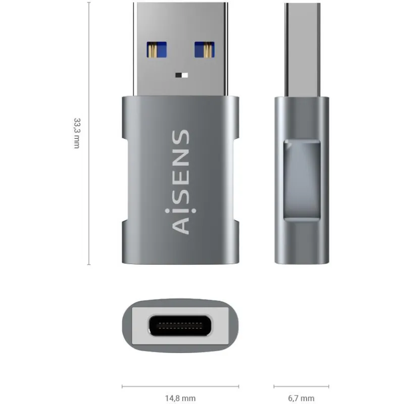 Aisens A108-0655 Adaptador USB USB-C a USB-A Gris