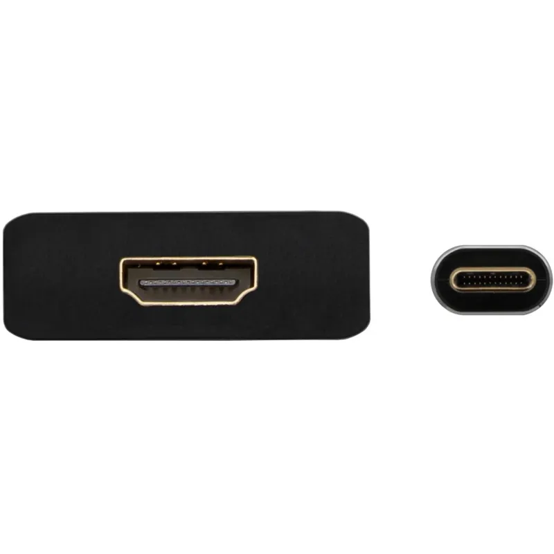 - Conversor USB-C a HDMI, con conector USB-C macho en un extremo y HDMI 4K@30Hz hembra en el otro