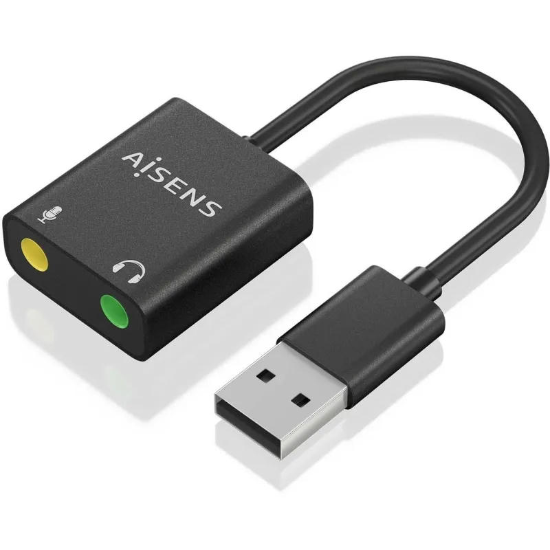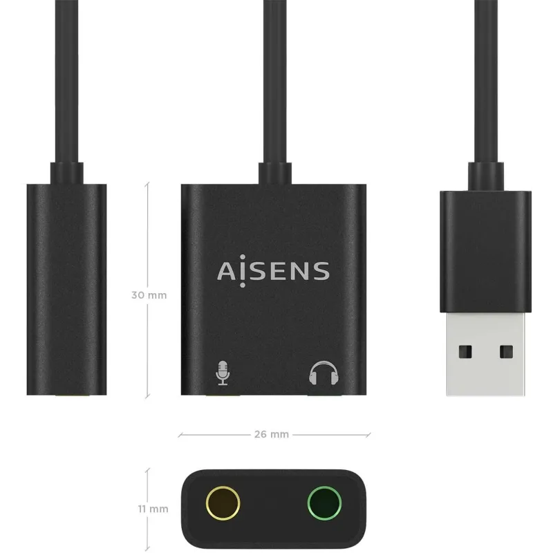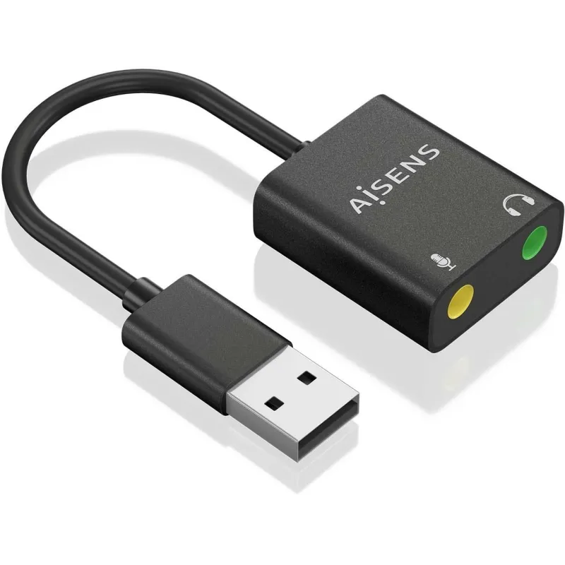 Aisens A109-0769 Conversor de Audio USB-A a Jack 3,5 mm 10 cm Negro