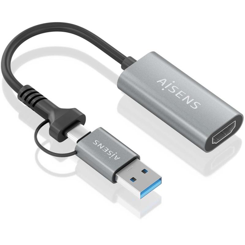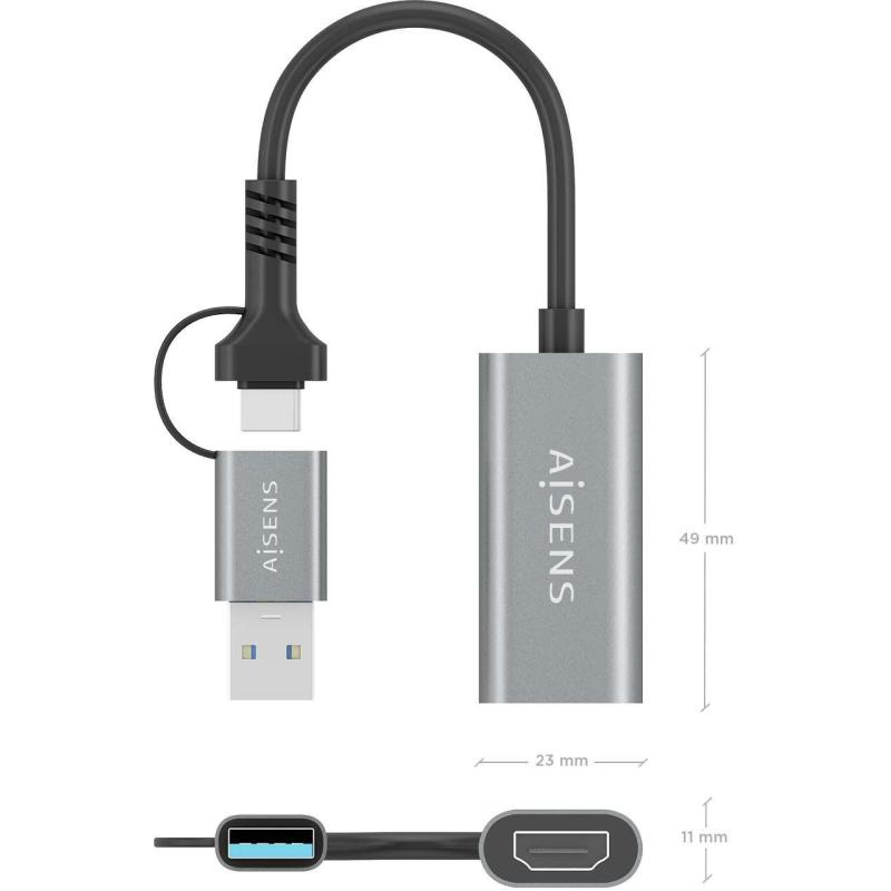 Aisens A109-0913 Conversor USB-C/UBS-A a HDMI 15cm Gris