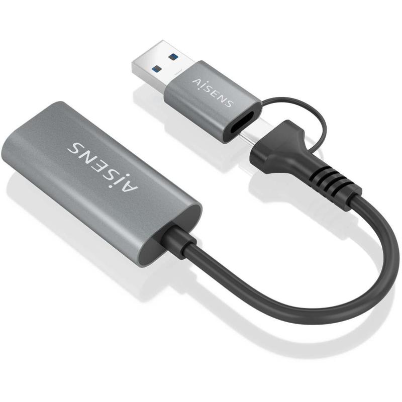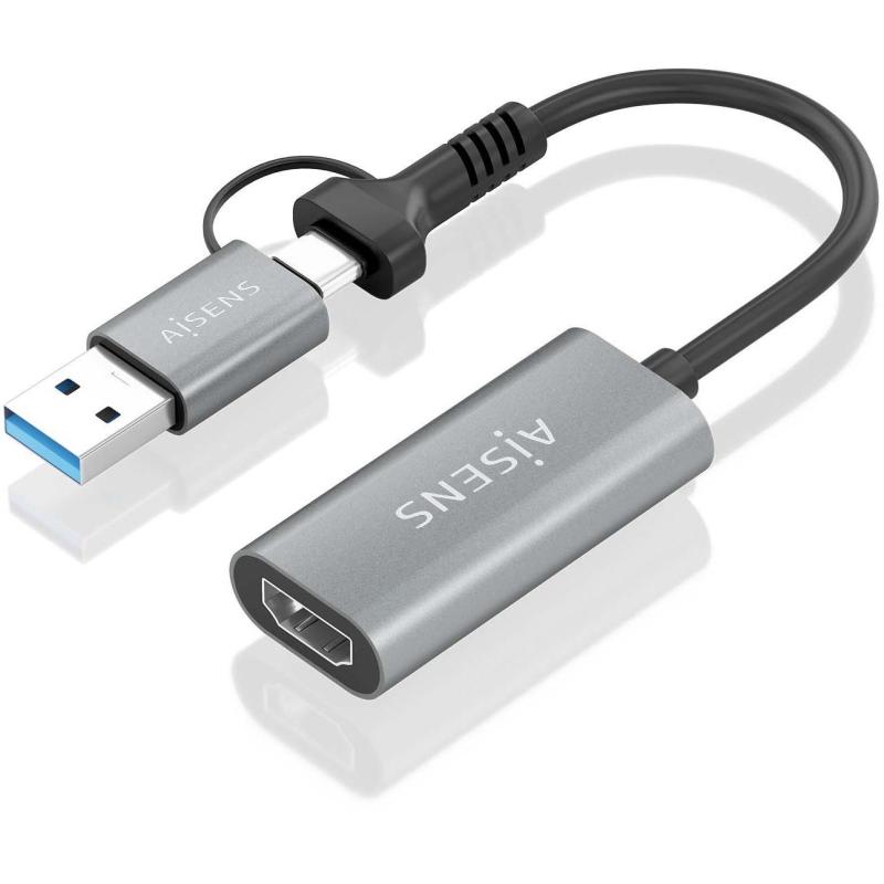 Conversor Aisens A109-0913 con USB-A y USB-C salida HDMI resolución 1080p a 60Hz, color Gris