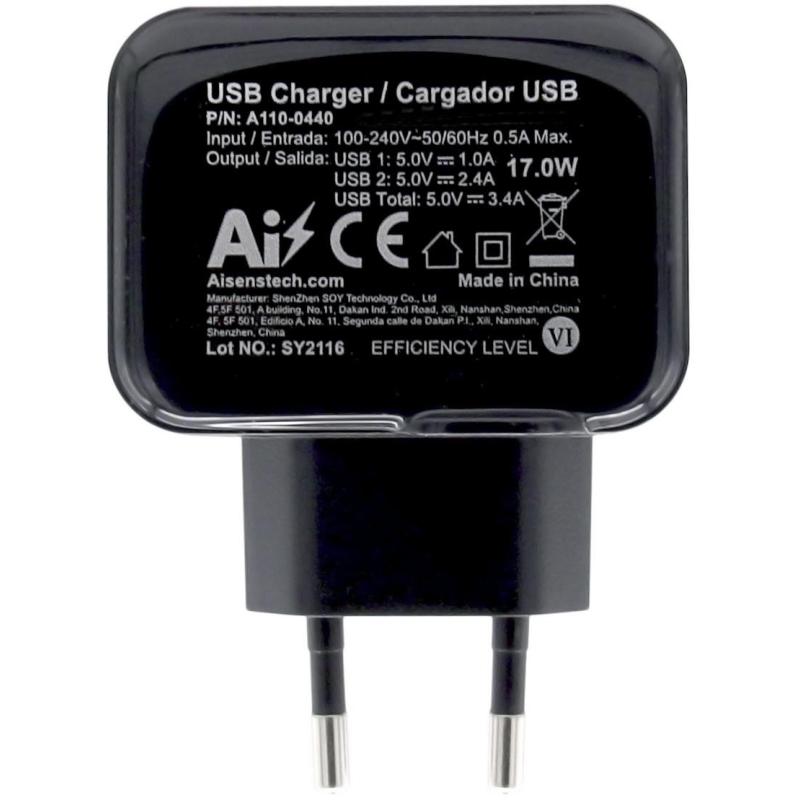 AISENS® – Cargador USB 17W 5V/3.4A, 2xUSB con control AI, Negro