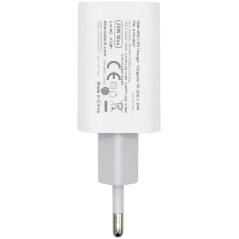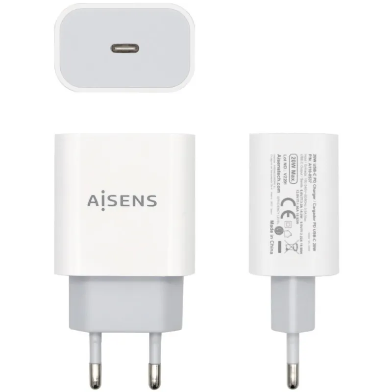 AISENS® – Cargador USB-C PD3.0 1 Puerto 1xUSB-C 20W, Blanco.