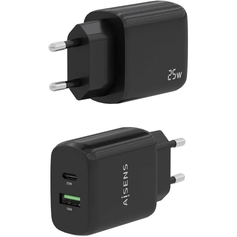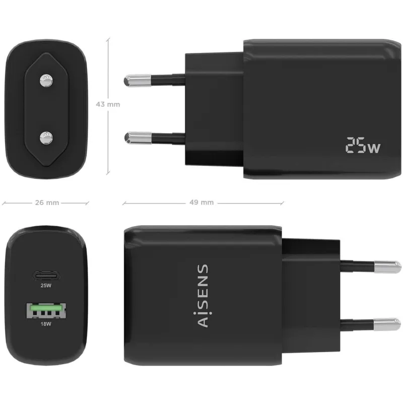 Aisens A110-0759 Cargador USB-A y USB-C 25 W Negro