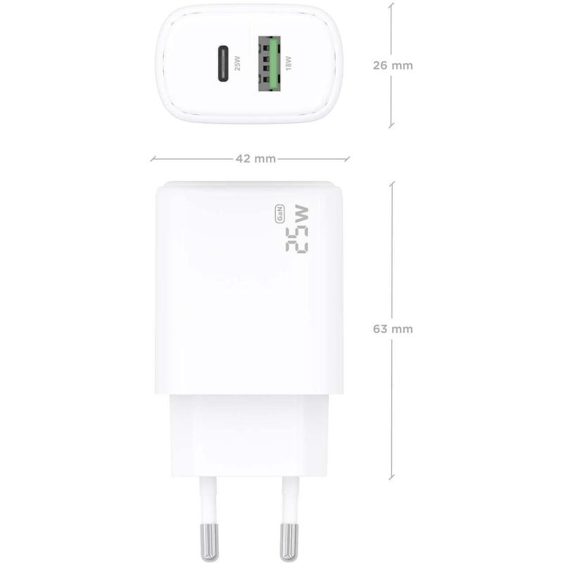 CARGA RÁPIDA Y EFICIENTE: Disfruta de una carga veloz y segura con el cargador rápido USB-C de 25W. Gracias a su tecnología GaN y compatibilidad con Quick Charge 3.0, tus dispositivos estarán listos en menos tiempo, optimizando el rendimiento energético y reduciendo el calor generado.