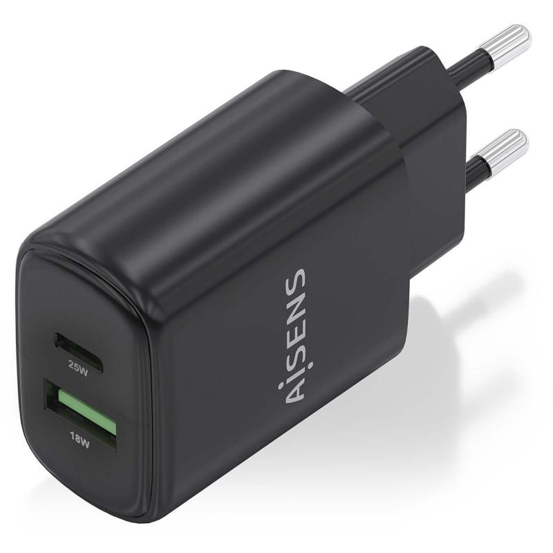 Aisens A110-0912 Cargador USB-A/USB-C 25W Negro