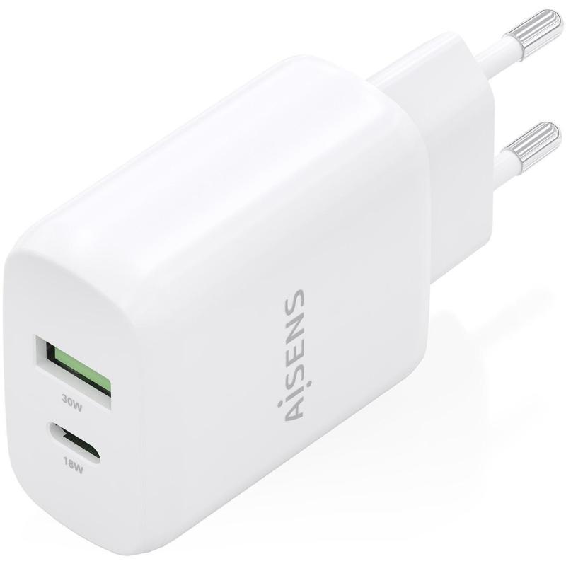 Cargador de Móvil Aisens A110-0923 con carga rápida 33W USB-C y USB 2.0 Compatible con smartphones tablets y más Protección contra sobrecargas.