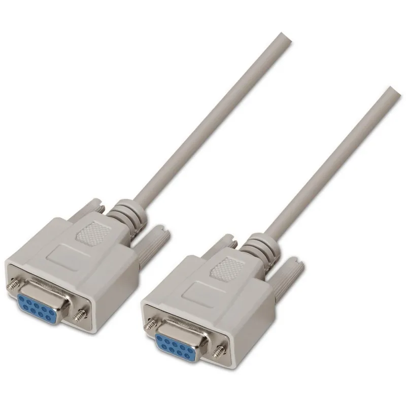 AISENS® – Cable SERIE null modem, DB9/H-DB9/H. Color beige, longitud 1.8 metros. Para dispositivos de comunicación equipados con puerto serie.