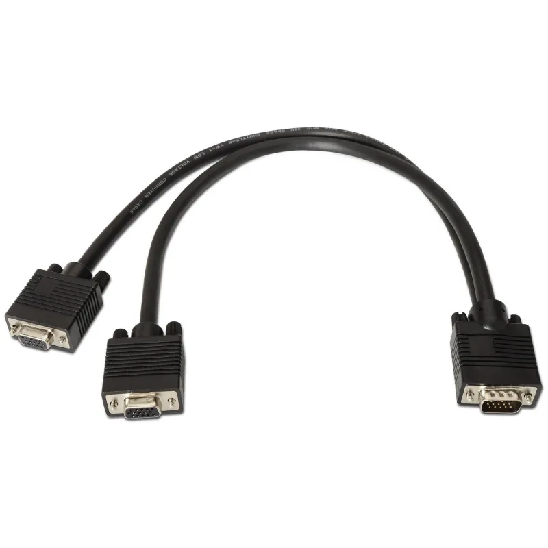CONEXIÓN ÓPTIMA PARA TU MUNDO DIGITAL: Descubre la eficiencia en cada conexión. Con una longitud ideal de 0,45 metros, este cable es la solución perfecta para espacios de trabajo compactos y configuraciones de entretenimiento en casa. Diseñado para adaptarse a tus necesidades, el conector VGA (D-Sub) macho se une sin esfuerzo a tu dispositivo, mientras que los dos conectores VGA (D-Sub) hembra esperan al otro extremo, listos para extender tu visualización a múltiples monitores.