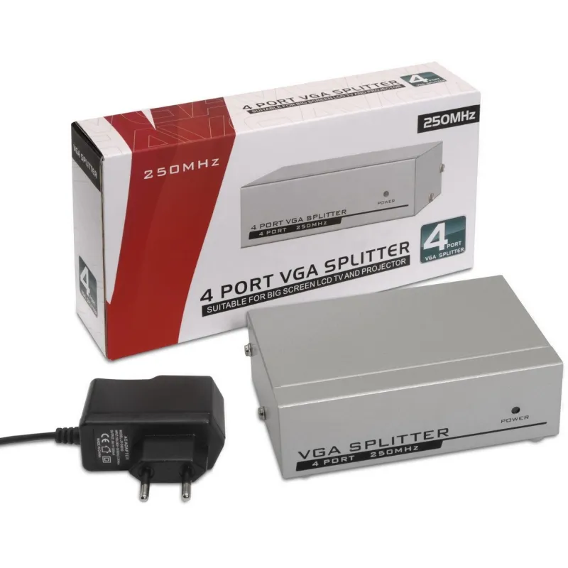 - Duplicador SVGA para 4 monitores con fuente de alimentación y carcasa metálica resistente.